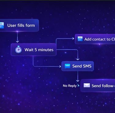 Most businesses blast messages. We build logic. Every message is triggered by real actions, form submissions, missed calls, bookings, or inactivity. So, your contacts receive the right message at the right time, without manual work.