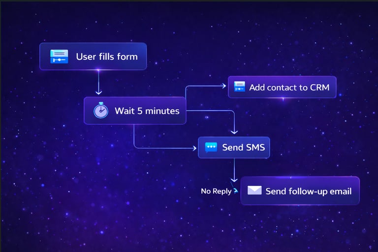 We design intelligent email and SMS systems that don’t just send messages they respond, follow up, and move leads forward automatically. From first inquiry to booked appointment and long-term nurturing, your communication runs in the background while your business scales.